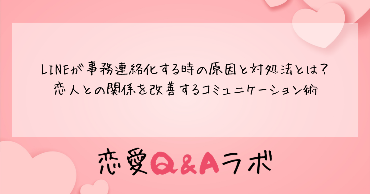 本記事では、LINEが事務連絡化してしまう原因から、関係を改善するための具体的な対処法まで詳しく解説します。パートナーとのコミュニケーションに不安を感じている方は、ぜひ参考にしてください。