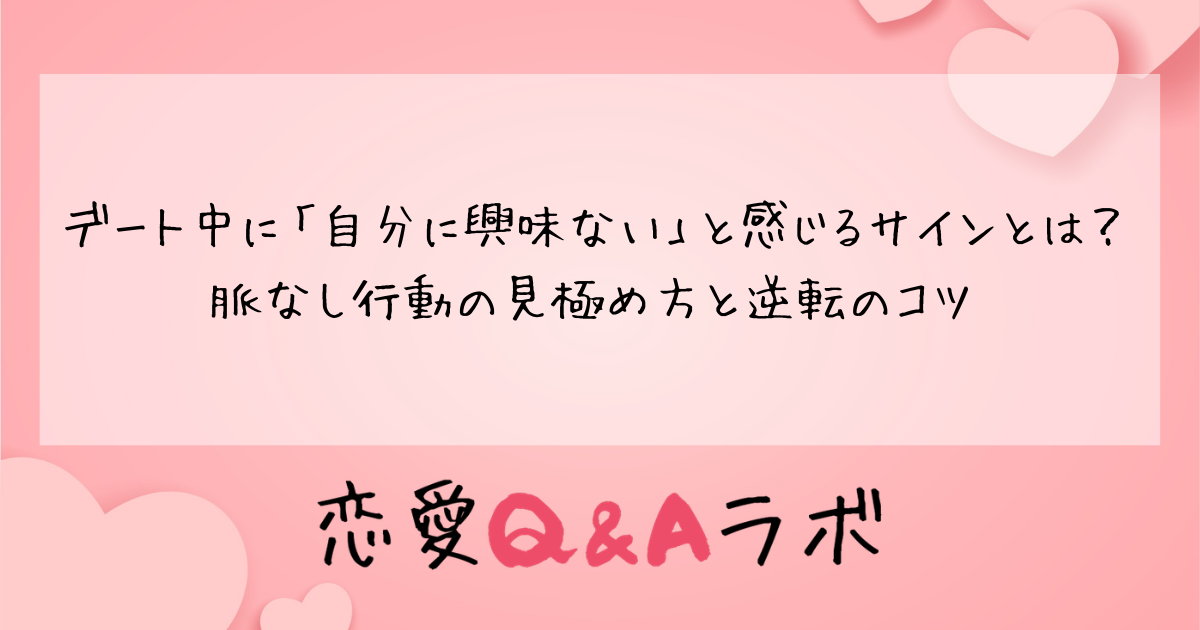 せっかくのデートなのに、なんだか相手の態度がそっけない。会話が盛り上がらない。スマホばかり見ている——そんな経験をしたことはありませんか。