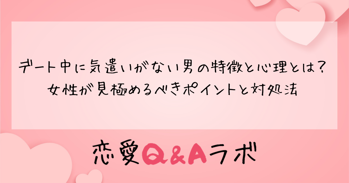 デート中に気遣いがない男性の特徴や心理、そして対処法について解説してきました。最後にポイントを整理しておきましょう。
