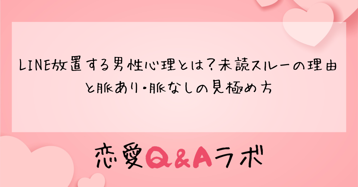 本記事では、LINE放置する男性の心理を徹底解説するとともに、脈あり・脈なしの見極め方や、放置されたときの効果的な対処法をお伝えします。