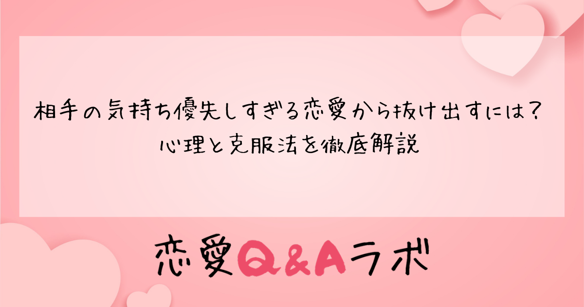 相手を大切にしたい気持ちは決して悪いものではありません。しかし、常に相手の気持ちを優先しすぎると、次第に自分を見失い、恋愛そのものが苦しいものへと変わってしまいます。本記事では、相手の気持ちを優先しすぎてしまう恋愛の心理的背景と、健全な関係を築くための具体的な克服法について詳しく解説していきます。