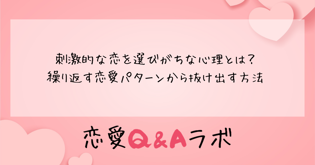 刺激的な恋を選びがちな心理には、自己肯定感の低さ、幼少期の愛着スタイル、「退屈=愛がない」という思い込み、日常からの逃避願望、「手に入らないもの」への執着など、さまざまな背景があります。