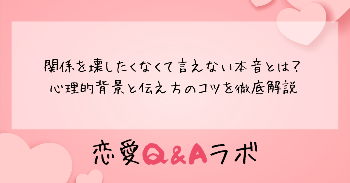 関係を壊したくなくて本音が言えないという悩みは、多くの人が抱えるものです。大切な人だからこそ言いにくい、失いたくないからこそ我慢してしまう——その気持ちはとても自然なものです。