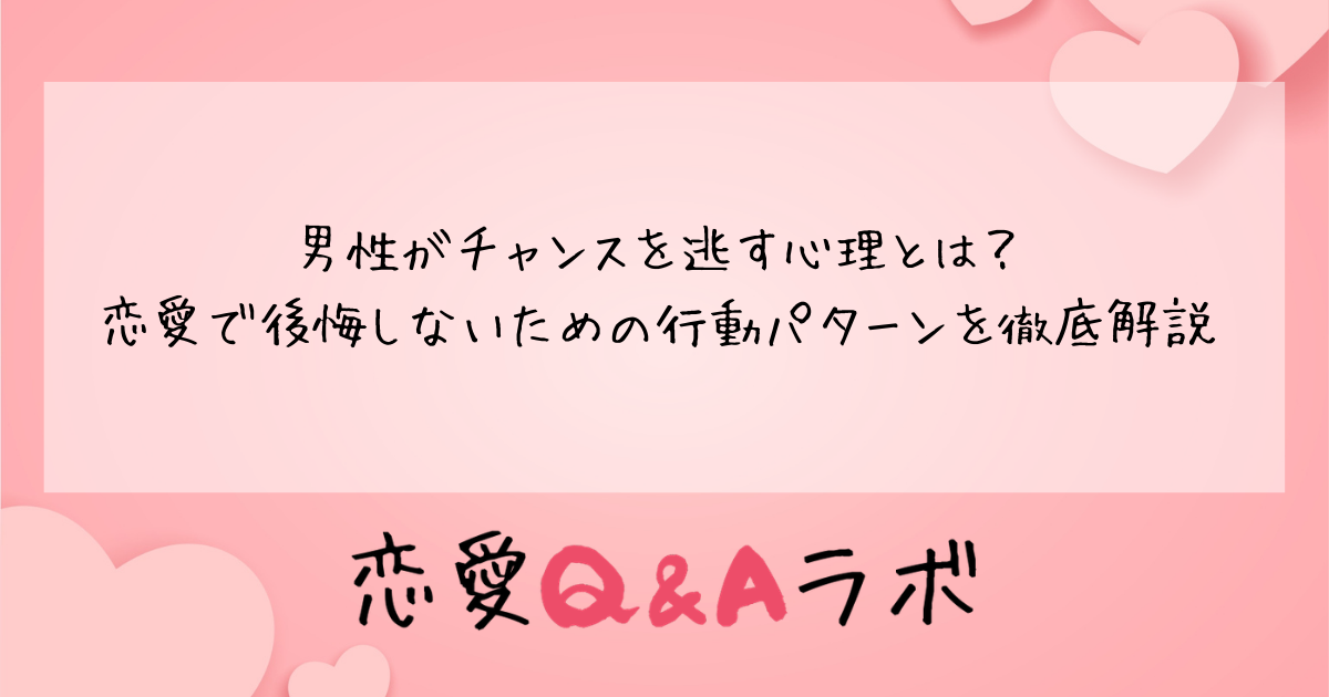 本記事では、男性がチャンスを逃す心理を深掘りし、後悔しないための具体的な行動パターンについて解説します。恋愛に奥手な方も、過去に苦い経験をお持ちの方も、ぜひ参考にしてみてください。