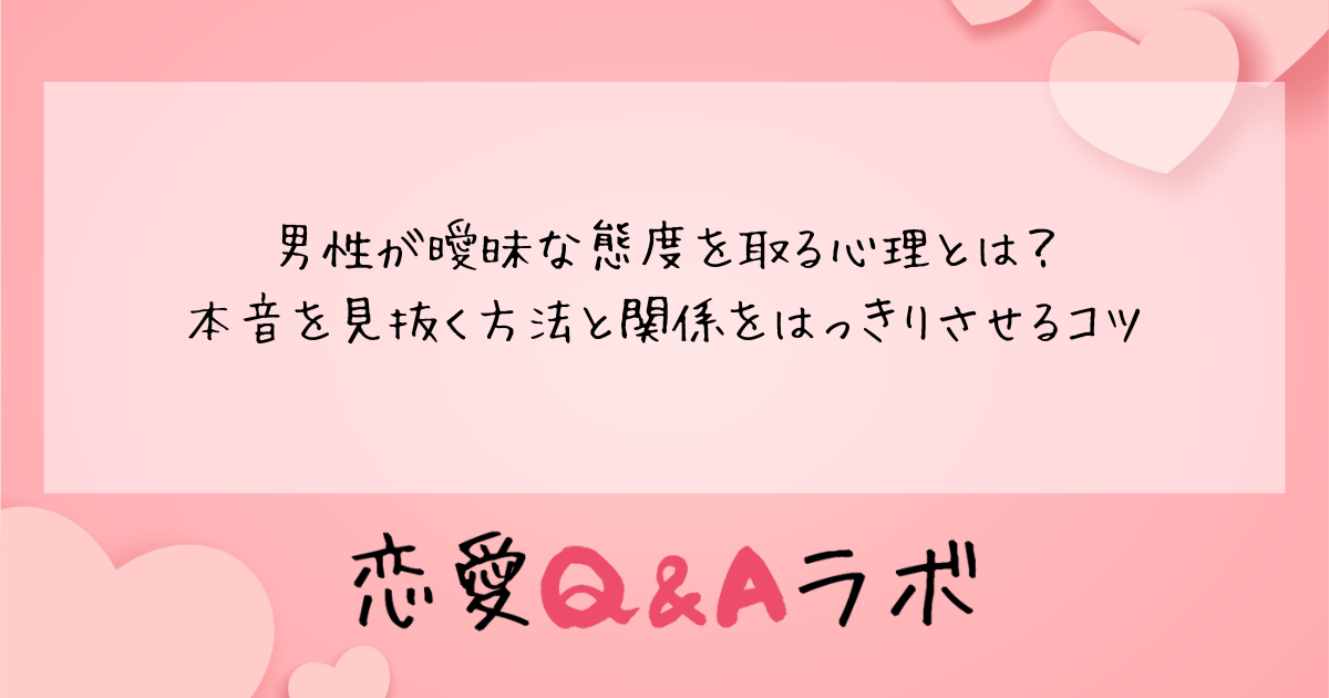 デートには誘ってくれるのに告白はしてこない。LINEでは優しいのに関係を進展させようとしない。そんな曖昧な態度に振り回され、モヤモヤを抱えている女性は少なくありません。