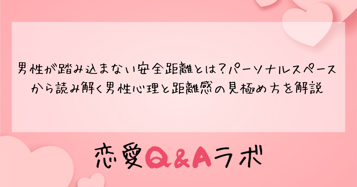 男性が「安全距離」を保つ背景には、パーソナルスペースの違いや心理的な理由が隠れています。本記事では、男性が踏み込まない安全距離の正体を、パーソナルスペースの観点から徹底解説。距離を縮めるためのヒントや、逆に下心がある男性との距離感の違いについても詳しくお伝えします。