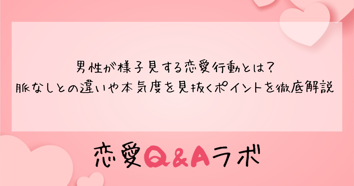 「彼の態度がよくわからない」「好意があるのか脈なしなのか判断できない」と悩んでいませんか。実は男性が恋愛において慎重になるとき、あえて距離を置いて相手の反応を確かめる「様子見」という行動をとることがあります。