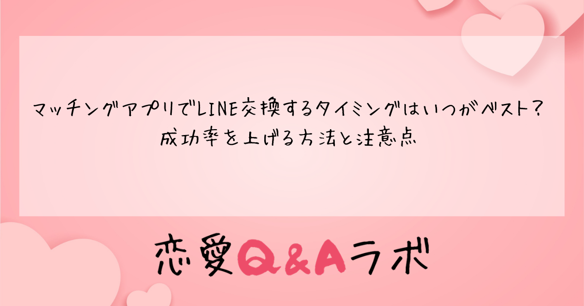 マッチングアプリで気になる相手とマッチングした後、多くの方が悩むのが「いつLINEを交換すればいいのか」という問題ではないでしょうか。早すぎると警戒されてしまい、遅すぎるとタイミングを逃してフェードアウトされてしまうことも珍しくありません。