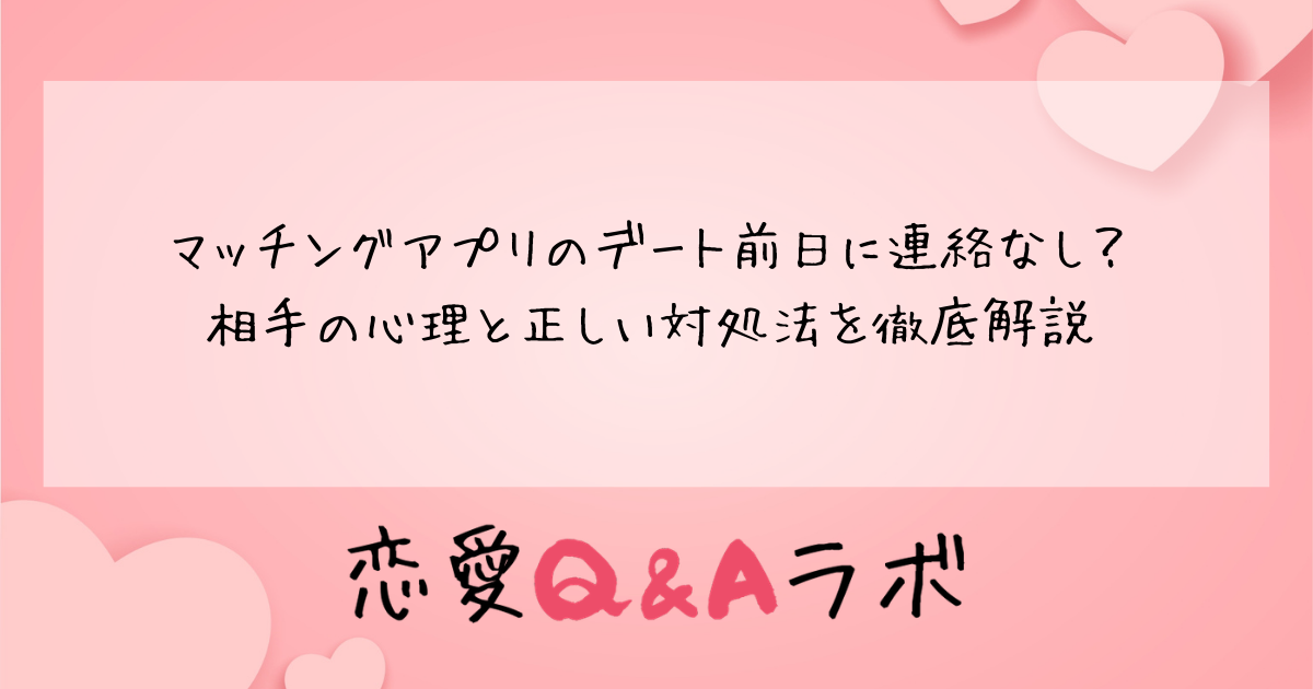 マッチングアプリでせっかくデートの約束を取り付けたのに、前日になっても相手から連絡がこない。そんな状況に不安を感じている方は多いのではないでしょうか。