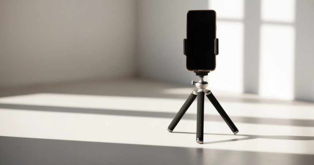 スマートフォンの三脚を使い、タイマー機能で撮影する方法がおすすめです。インカメラではなく、アウトカメラを使ったほうが画質が良くなります。明るい窓際で撮影し、自然光を活用しましょう。
