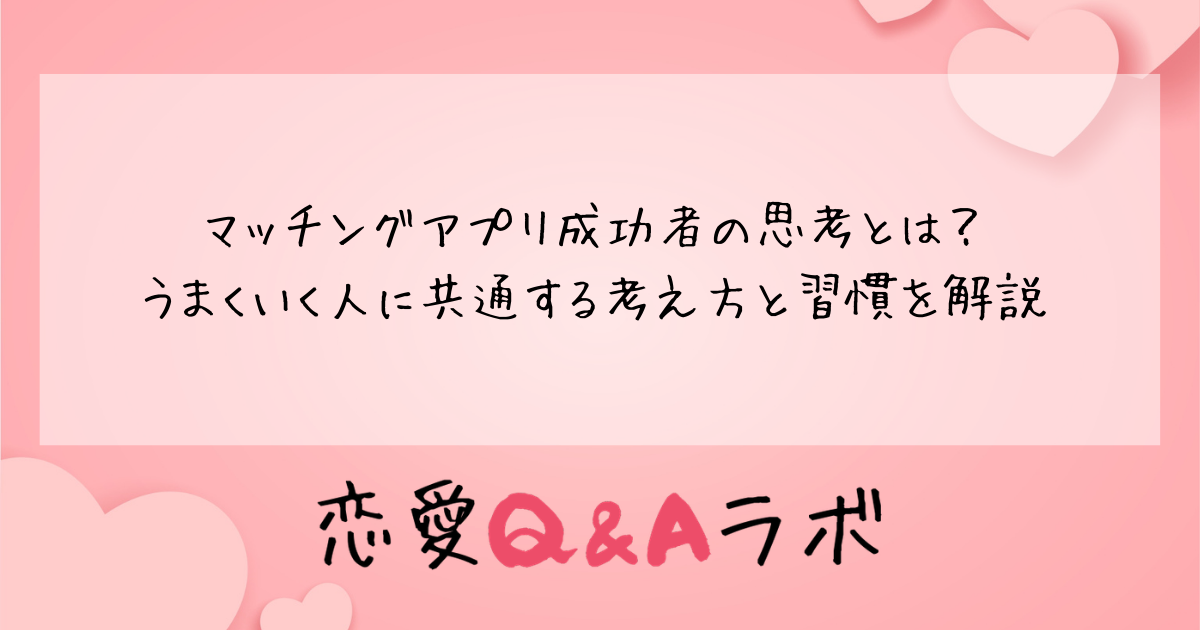 本記事では、マッチングアプリで理想の相手と出会えた成功者たちに共通する思考習慣と行動パターンを詳しく解説します。なかなかうまくいかないと感じている方は、ぜひ自分の考え方と比較してみてください。