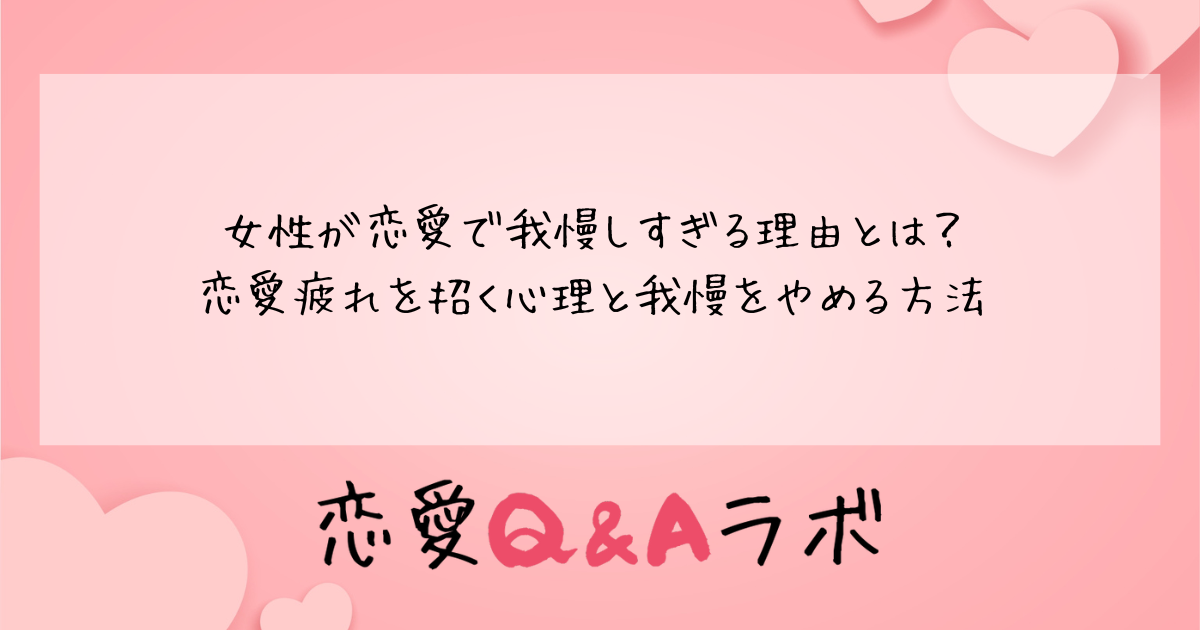 本記事では、女性が恋愛で我慢しすぎてしまう理由、我慢ばかりの恋愛がもたらす悪影響、我慢をやめて自分を大切にする方法について詳しく解説します。