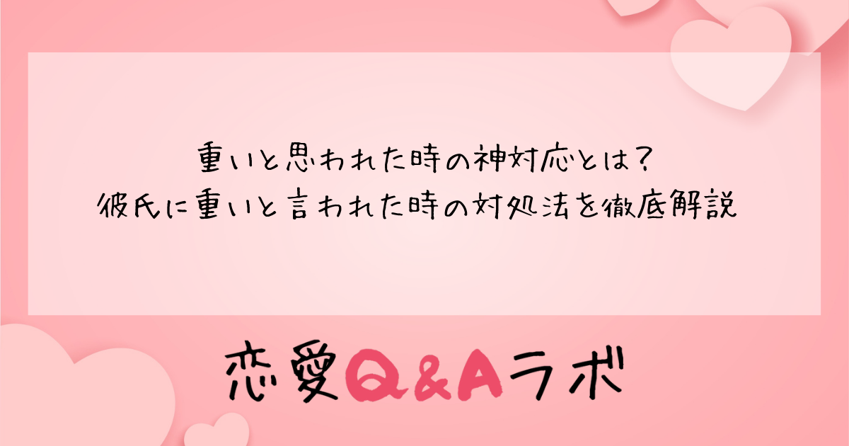 「彼氏に重いって言われた」「重いと言われて振られた、復縁できる?」「重いと思われないようにするには、どうすればいい?」