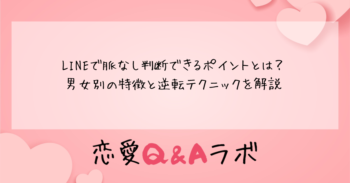 本記事では、LINEの返信内容から脈なしを判断できるポイントを男女別に詳しく解説します。また、脈なしの状態から脈ありに逆転させるためのテクニックや、やってはいけないNG行動についてもお伝えしていきます。相手の気持ちを見極めて、今後のアプローチに役立ててください。