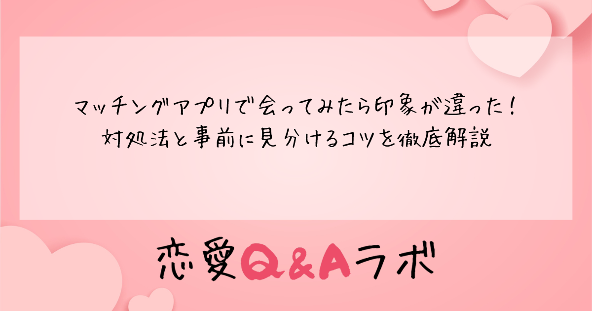 本記事では、マッチングアプリで会ってみたら印象が違った場合の具体的な対処法から、そもそも「会ってがっかり」を避けるための事前対策、そして違和感を感じた相手への上手な断り方まで、実践的な情報をお届けします。