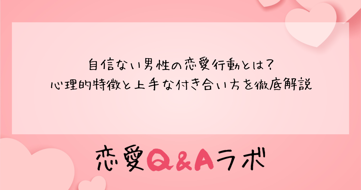 実は、自分に自信がない男性は意外と多く、その心理や行動パターンには共通した特徴があるのをご存じでしょうか。本記事では、恋愛に自信がない男性の心理や特徴的な行動パターンを詳しく解説します。また、そうした男性と上手に恋愛を進めるためのコツや、男性自身が自信を持つための具体的な方法もご紹介していきましょう。