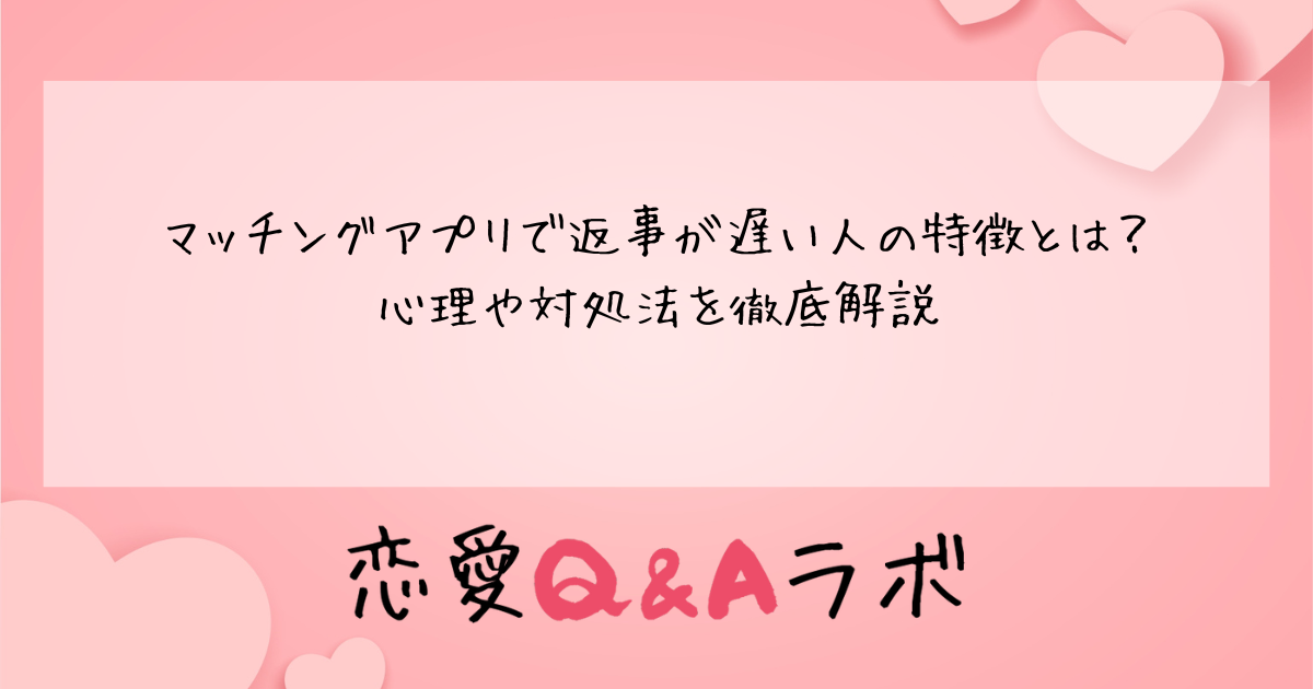 マッチングアプリでせっかくマッチングしたのに、相手からの返信がなかなか来ない……。そんな経験をしたことがある方は多いのではないでしょうか。返信が遅いと「脈なしかも」と不安になってしまいますが、実は返信が遅い人にはさまざまな特徴や心理が隠れています。