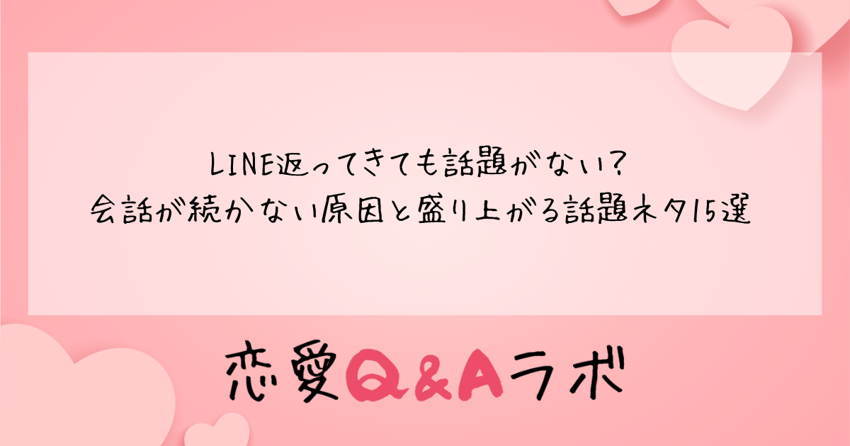 好きな人や気になる相手からLINEの返信が来たのに、何を返せばいいかわからない。そんな経験をしたことはありませんか。せっかくやり取りが始まっても、話題が見つからず会話が途切れてしまうと、関係を深めるチャンスを逃してしまいかねません。