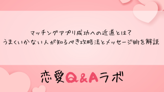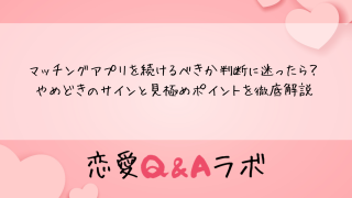 マッチングアプリを使っていると、「全然マッチングしない」「せっかく会えたのにフェードアウトされた」「メッセージのやり取りが続かない」など、心が折れそうになる瞬間は数え切れないほどあるもの。真剣に出会いを求めているからこそ、うまくいかない時の...